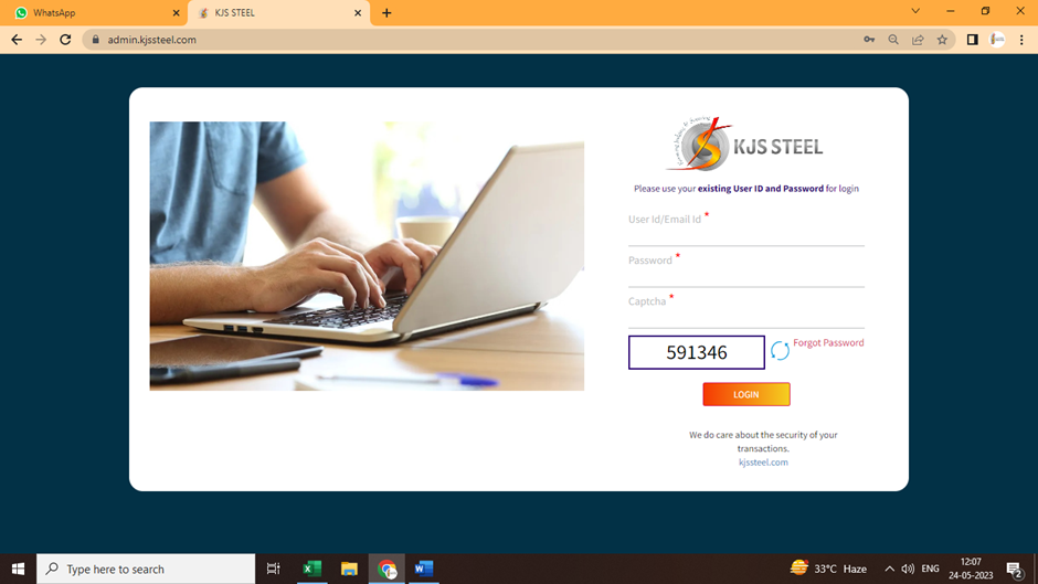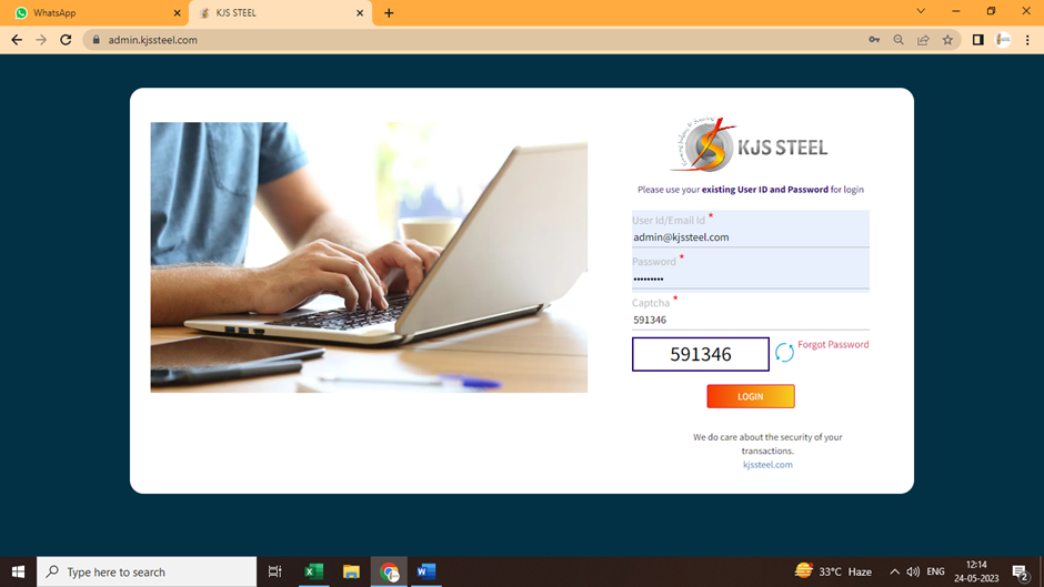 Type URL: - https://admin.kjssteel.com/